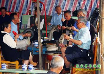 圍鼓(含嗩吶)。又稱打鎦子、打排鼓,是民間紅白會中不可缺少的樂器。一般7人演奏,樂器有一鼓、一大鑼、一公鑼、兩副鈸、兩嗩吶。其詞曲紅白會通用,以鼓和嗩吶上系紅、白布為分別標記(結(jié)婚不打“四字鈸”曲)。史傳的圍鼓詞有《撩子》、《火鋪》等,《撩子》分《一二三》、《閃翅》、《堆羅漢》、《反落花》等十章,《火鋪》也分《三槍》、《四進門》、《八哥洗澡》、《蓮魚吐絲》等十章,嗩吶詞有《八十正宮》調(diào)等。在農(nóng)村,圍鼓是最普及的樂器,每逢紅白喜事都有圍鼓和嗩吶表演。