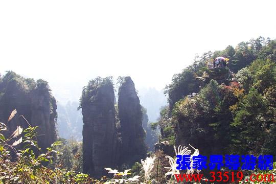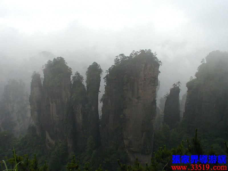 (山頂環(huán)覽線:五指峰、前花園、黑樅垴)朋友們!這里的每一座巖峰都是一件古老的藝術(shù)品,每一座巖峰都隱藏著大自然的無窮奧秘。面對(duì)如此壯美雄奇、氣象萬千的砂巖峰林風(fēng)光,幾年前,一位來自東北的女作家,就站在黃石寨(黃獅寨)上感嘆道:看了張家界的風(fēng)光,覺得真可以死了。接下來她又說,看了張家界的風(fēng)光,覺得更有理由好好活了。兩句話看起來前后矛盾,其實(shí)不然:前一句是說能見一到像張家界這樣奇美的風(fēng)光,此生足矣;后一句是說人生是如此美好,理應(yīng)更加珍愛生命。大家說對(duì)不對(duì)? “人生不到張家界,百歲何能叫老翁。”