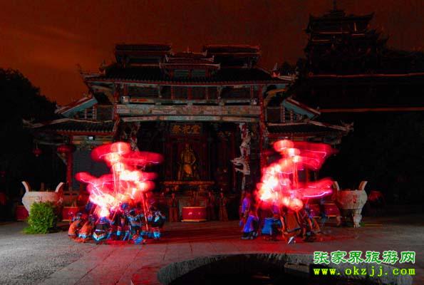 第三站:擺手場上圖騰柱的講解、土家族風(fēng)情表演及客人參與的互動節(jié)目,讓您在歡快的擺手舞中陶醉。(其中每天上午十點、下午四點準(zhǔn)時推出土家族百人大祭祖活動;