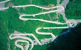 【通天大道】:被稱為通天大道的盤山公路共計99彎,似玉帶環(huán)繞,彎彎緊連,層層疊起,依山籍壁,直沖云霄,“天下第一公路奇觀”橫空出世,從索道上觀看公路,有如蜘蛛網(wǎng)一般密集的公路,垂直高差達(dá)千米左右。