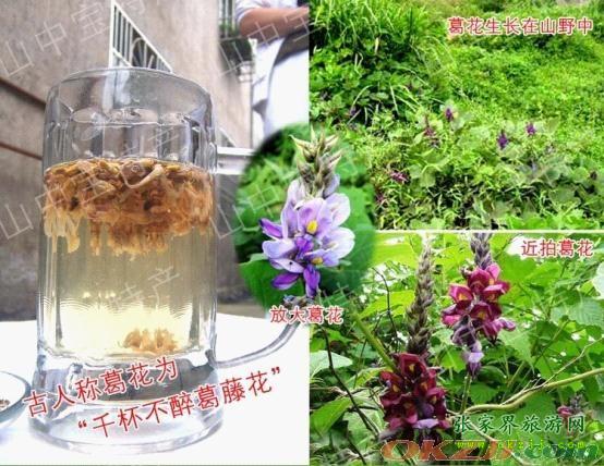 我國(guó)有五千年文明史,有關(guān)葛文化的記載至少有2500年?!对娊?jīng)》曰:“葛之覃兮,施于谷,維葉萋萋。”“試問禪天,參求無數(shù)……免葛藤叢里,婆娑游子,夢(mèng)魂顛倒。”寫得惟妙惟肖,令人陶醉?!斗鸾?jīng)》曰:“昔緣未了論開語,今又葛藤試解環(huán)。”此后各代文學(xué)作品中有關(guān)葛藤的描述數(shù)不勝數(shù)。葛藤粉在日本又稱“長(zhǎng)壽粉”,美國(guó)、加拿大等國(guó)將葛粉制品列為最受歡迎的“綠色保健食品”。    在古籍中葛藤又名雞齊、黃斤、天仙藤、黃葛藤、山牛藤、野扁葛、葛條等。后漢人編寫的《神農(nóng)本草經(jīng)》是我國(guó)最早的中草藥專著,記載了365種藥物,總結(jié)了漢代以前的醫(yī)藥成果,把葛列為中品,是一味大眾化中草藥。秦、漢時(shí)期,勞動(dòng)人民已經(jīng)懂得用葛根取出淀粉后的纖維織布,古詩中有“老酒三杯千愁去,葛衣一撩萬事休”的詞句,這里葛衣就是葛布所做;勞動(dòng)人民還用葛根的纖維做鞋,叫“葛履”,比草鞋柔軟耐穿;葛藤還可當(dāng)天然繩索使用,又是編制筐、籃、藤椅、藤繩的原料。    葛藤不同部分有不同用途,葉、花、籽、根、粉都可以入藥,特別是根、粉最為常用?!吨嗅t(yī)大詞典》介紹:“葛根、葛粉含有葛根素、葛根樹木糖、大豆黃酮、大豆黃酮貳B—谷甾醇、花生酸等,有解熱和降低血糖、化痰生津、潤(rùn)肺消痹、柔和血管、美膚等功能。葛粉沖服可治煩熱、口渴、喉痹、高血壓、酒精中毒等癥?,F(xiàn)在市場(chǎng)上的“葛花解酒湯”古代就是解酒毒的特效良藥。    張家界山民介紹,葛藤嫩葉可以炒食或做湯,塊根用水浸泡去皮后可以蒸食、炒菜,葛粉還可以制作涼粉。食用這些綠色食品,有益身體健康,提高人的免疫功能,預(yù)防多種疾病。古籍描寫歷史上“天門山上的道士、高僧常采葛葉、葛花、葛根食用,以沖飲葛根粉,保期頤高壽”。在很久以前張家界地區(qū)許多饑民靠吃葛根度過了難關(guān)。年過花甲的人常飲葛粉,可以預(yù)防老年癡呆、未老先衰,保持筋骨通泰、延年益壽。桑植縣葛粉制造技藝卓越的吳老85歲時(shí),仍耳聰目明,提水拾柴、刨根制粉敢與青壯年比高低,他說:“一早喝碗葛藤粉,保你一天有精神;經(jīng)常喝碗葛藤粉,保你長(zhǎng)壽不生病”。當(dāng)年,他制作的葛粉被譽(yù)為“千年傳統(tǒng)的中華山珍”。在張家界游玩后你不難發(fā)現(xiàn),這里的老人都是精神飽滿,氣色非凡,個(gè)個(gè)健步如飛。專家分析這里人健康長(zhǎng)壽與青山綠水環(huán)境、多數(shù)人愛吃葛藤粉及心胸豁達(dá)有關(guān)。