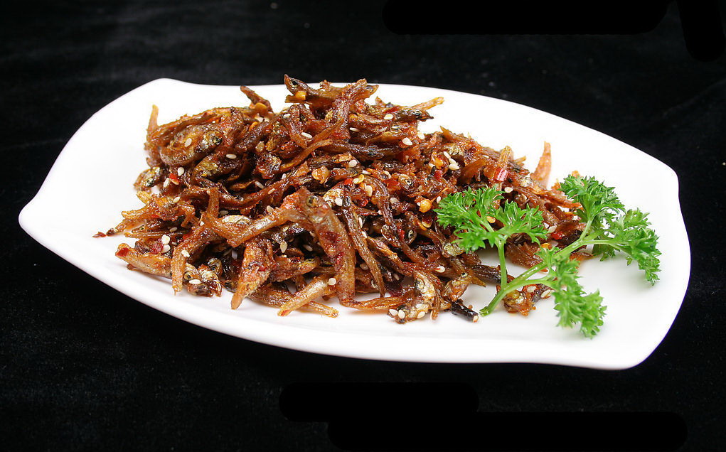 原料為小魚蝦,其中以“青皮嫩”為最佳,肉多味美,魚蝦捕撈上趁新鮮將其沖洗干凈,瀝干水,均勻地攤在熱鍋子里(鍋上刷一層油使它們不粘鍋)。半小時左右,這些魚蝦就已經焙干,一側焦黃,透出薰香,再剔去肚腸,炒豆豉辣椒或將青椒青蒜切細同炒均好,味道絕美。