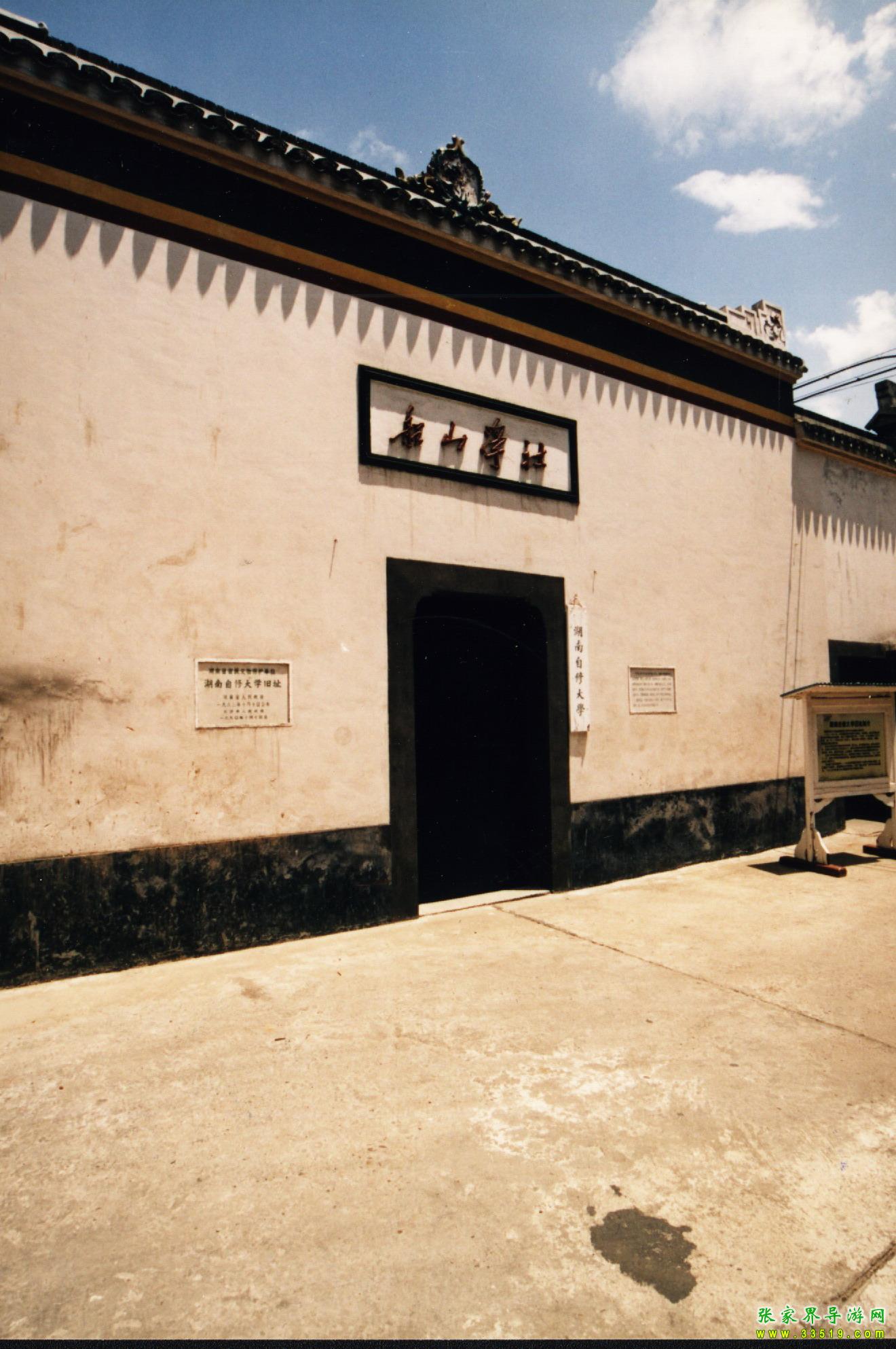 湖南自修大學(xué)舊址在中山東路263號(hào),原為曾國藩祠的一部分。光緒初,郭嵩燾在此創(chuàng)辦思賢講舍。1912年劉人熙將其易名為船山學(xué)社。1921年8月,毛澤東、何叔衡于中共“一大”后,取得社長仇亦山,總干事王季范等同意,在此創(chuàng)辦湖南自修大學(xué),李達(dá)為首任校長。