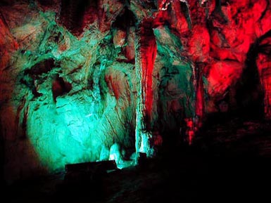 全只有一個裂縫狀的入口,由三組穴和18個“廳堂”組成,呈不對稱的樹枝狀展開,累計長達1870米,域總面積為84150平方米。內(nèi)通道曲折幽奇,怪石叢生。入約300米,環(huán)顧四周, 好似“山窮水復疑無路”,而仔細探尋,上方竟有尺許小,其圓如鏡,只容鉆入,鉆入之后,則是“柳暗花明又一村”,入大天,令人咋舌,三號內(nèi),那只聞其聲、難見其形的地下飛泉瀑布,聲若虎嘯雷鳴,使人毛骨悚然。行至深處,深潭擋路,一座又窄又滑的天生“小橋”飛架其上,令人望而卻步。二號后段則是一個福地天。深處的“天窗”猶如一彎朗月高懸,景觀奇異,叫人更加流連忘返。錫巖仙的石筍、石林、石柱、石幔琳瑯滿目,千姿百態(tài),鬼斧神工,維紗維肖。“珍珠傘”勝景,美無倫比。
