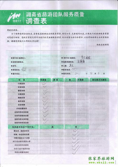 2011年4月2日樊先生一行8人旅游質(zhì)量反饋