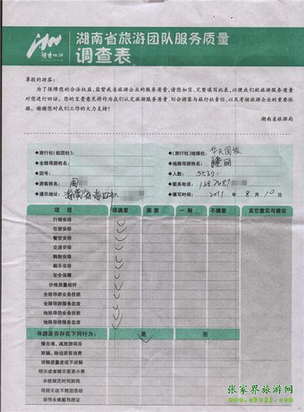 2011年8月10日周先生一行8人旅游質(zhì)量反饋