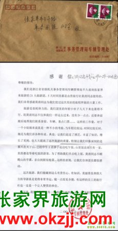 - 游客夏先生為表?yè)P(yáng)導(dǎo)游李姣姣寫(xiě)來(lái)表?yè)P(yáng)信致我張家界... [14811]