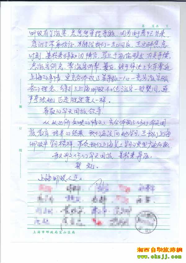 2010年5月31上海郵政局對我社導游的表楊信