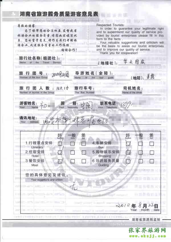 2010年8月22日西安初小姐一行15人旅游質(zhì)量反饋