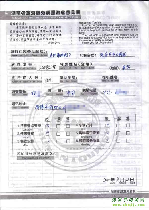 2010年8月22日陶先生一行22位旅游質(zhì)量反饋