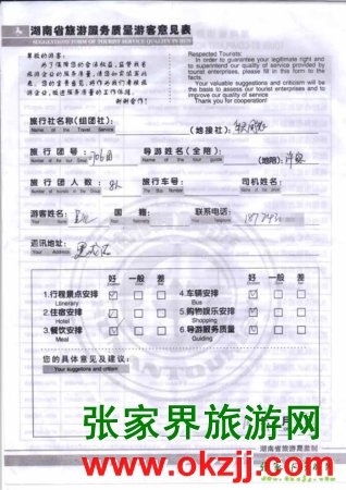 2010年7月5日黑龍江吳先生一行5位旅游質(zhì)量反饋