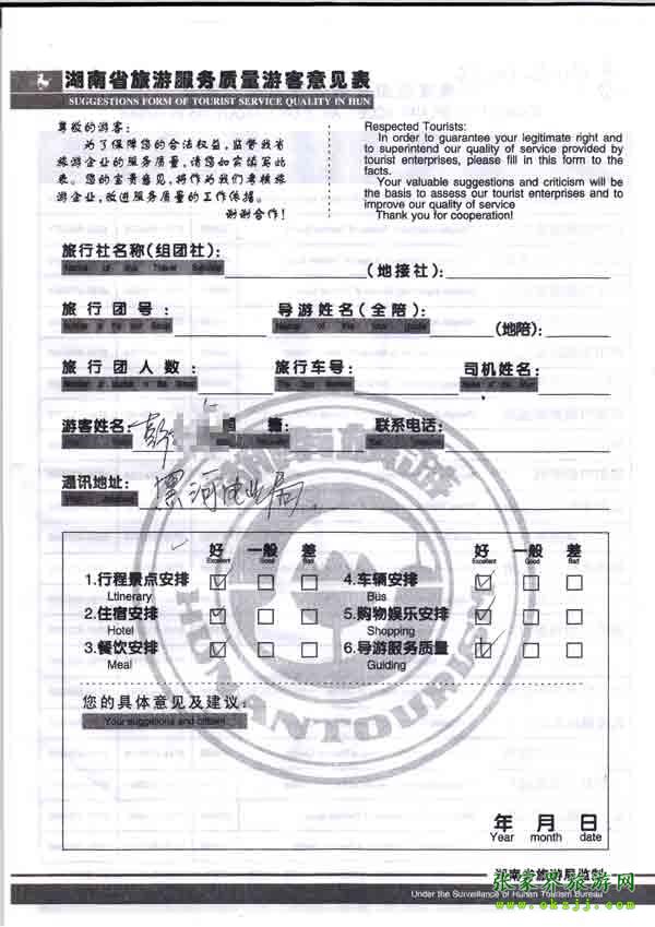 2010年10月8日彭先生旅游質(zhì)量反饋