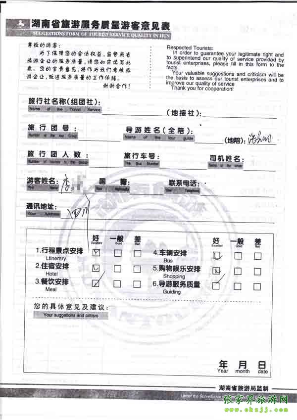 2010年10月10日李先生旅游質(zhì)量反饋