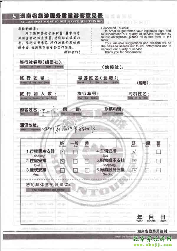 2010年7月23日四川萬先生旅游質(zhì)量反饋