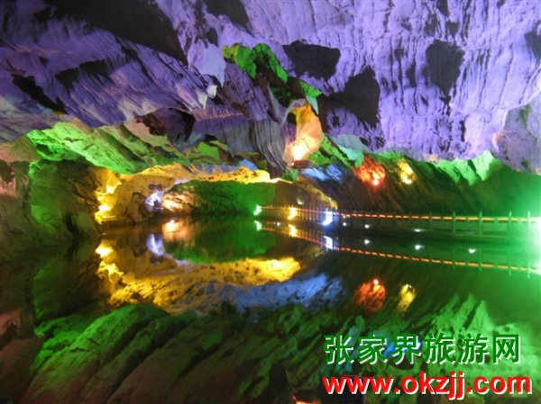 1994年中國(guó)第三屆溶風(fēng)景會(huì)議在這里召開(kāi)期間,本土一位作家偶然間發(fā)現(xiàn)中居然有野草蔓生!黃龍洞內(nèi)原先根本看不見(jiàn)任何植物,專家認(rèn)為億萬(wàn)年干燥、黑暗的自然條件,不可能生長(zhǎng)植物。但是,不可思議的是,由于日光燈長(zhǎng)期照射,中居然萌生出一派春色。奇怪的是普通白熾燈光下,卻又見(jiàn)不到這種風(fēng)景。難道是日光燈的某種力量叩醒了它們的生命之夢(mèng)?1996年,中央電視臺(tái)“正大綜藝”攝制的“張家界專題”中,專門(mén)為黃龍洞中長(zhǎng)草設(shè)計(jì)了一道“猜猜看”。這以后,有的人就沖著“中長(zhǎng)草”這一奇觀,跑來(lái)張家界旅游,說(shuō)要親眼一辨真假。那么,我現(xiàn)在給大家出個(gè)題目,解這萬(wàn)古生命之謎:1、種子哪來(lái)?是飛禽走獸帶來(lái)?是隨風(fēng)吹來(lái)?還是史前世紀(jì)地球在發(fā)生多次災(zāi)難時(shí)殘存的物質(zhì)?2、假設(shè)種子是億萬(wàn)年前地殼變動(dòng)時(shí)裹攜而來(lái),那么,種子休眠了億萬(wàn)年,為何不死不生?為何又在日光燈下復(fù)蘇?那么日光燈究竟有什么神奇的力量?如果誰(shuí)能解開(kāi)這個(gè)謎,誰(shuí)就可以成為黃龍洞的永久貴賓。我等著各位的答案? (響水河)現(xiàn)在我們上船游響水河。夢(mèng)幻般的情調(diào),神話的氛圍,嘩嘩的水聲,如聞仙樂(lè)縹緲。棲龍島、龍花礁、龍王金盔、藏寶閣、石花柱、插香臺(tái)......我們好像來(lái)到了安徒生童話中的海底王宮!難怪聯(lián)合國(guó)教科文組織的那兩位官員蕩舟響水河時(shí)說(shuō),黃龍洞是他們所看到的世界上最美的溶,中還有這么長(zhǎng)的陰河,真是不可思議。